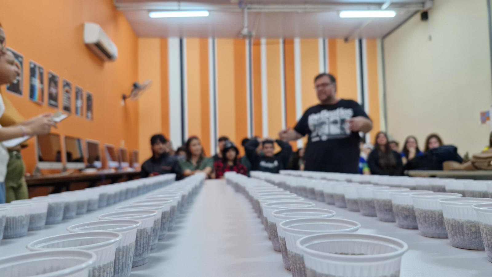 Durante a atividade, os estudantes experimentaram diferentes refrigerantes sem qualquer identificação de marca, embalagem ou informação visual.